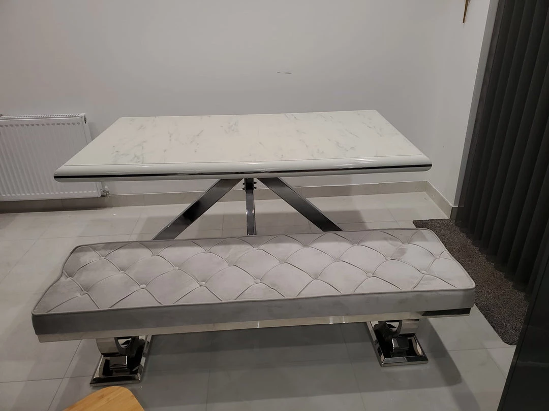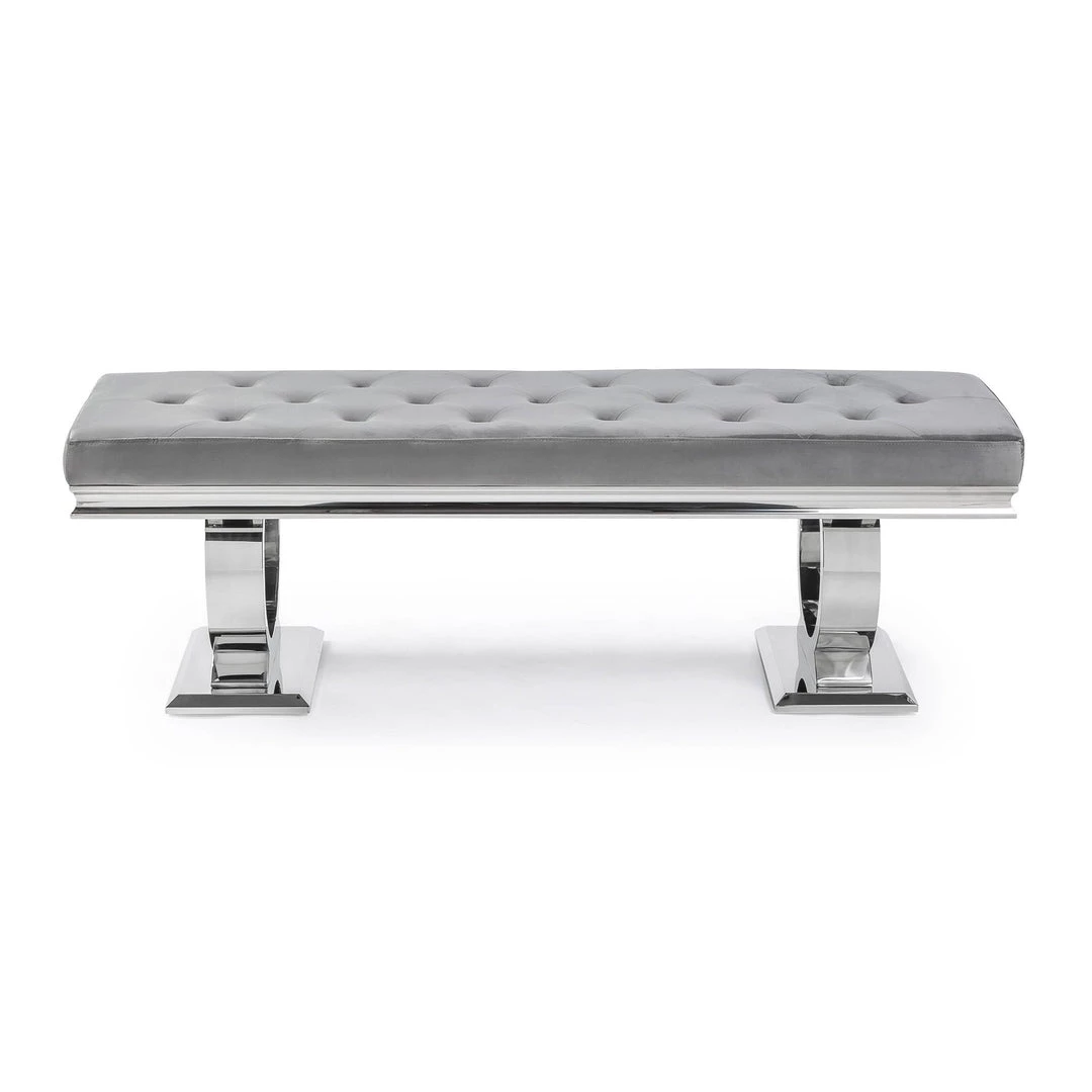 Our Arriana Dining Bench is the perfect addition to the Arriana Dining Table, a great space saving solution, our benches can fit snug underneath the table when not in use. Finished in a soft velvet texture with matching polished chrome base. Pair with our Sandhurst Dining Chair in Dark Grey for the ultimate in luxury dining.