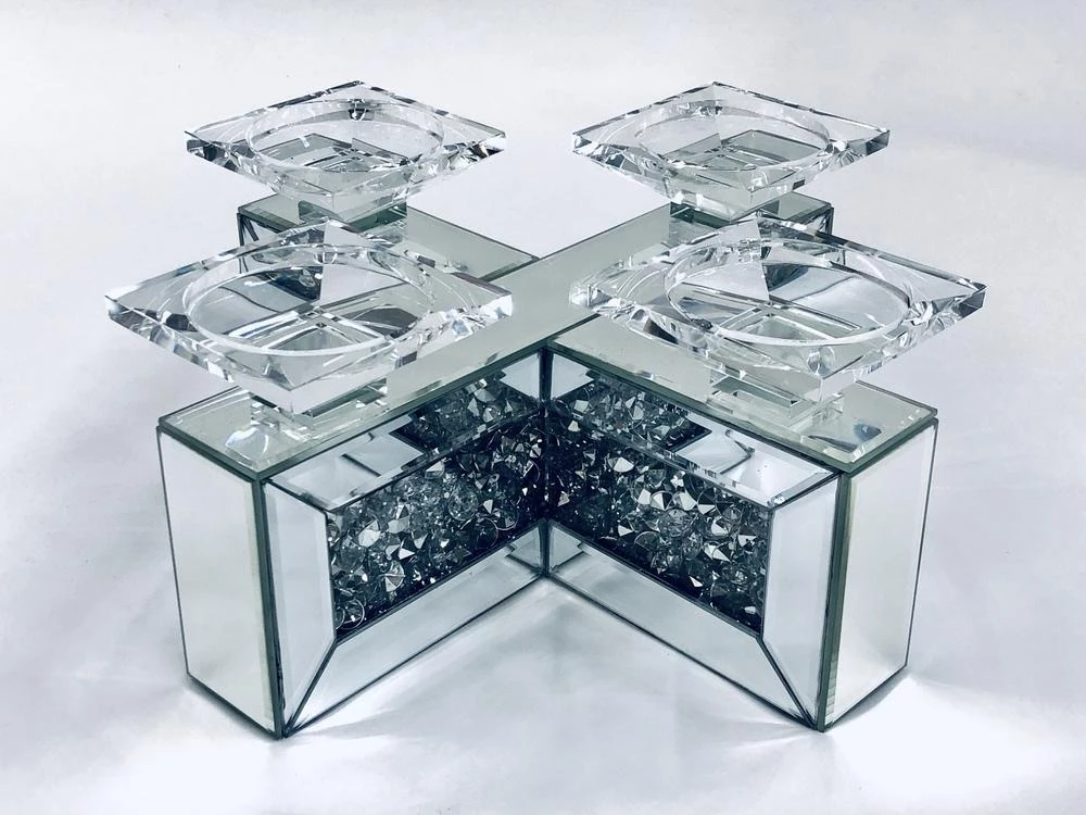 ASR INTERIOR Crushed Diamond Nest Of Tables MIRRORED FURNITURE