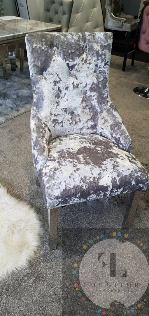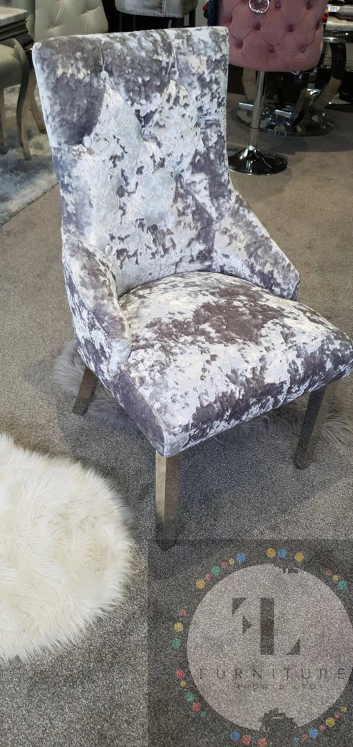 ASR INTERIOR Venice Lustro Premium Crushed Velvet Silver Dining Chair