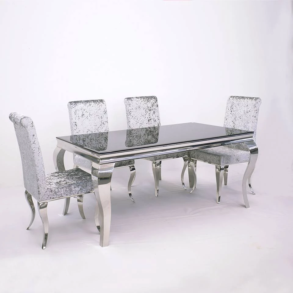 The Imperial Dining Table is an exquisite and stylish addition to any dining area. With its distinctive tempered glass top and contrasting stainless steel base