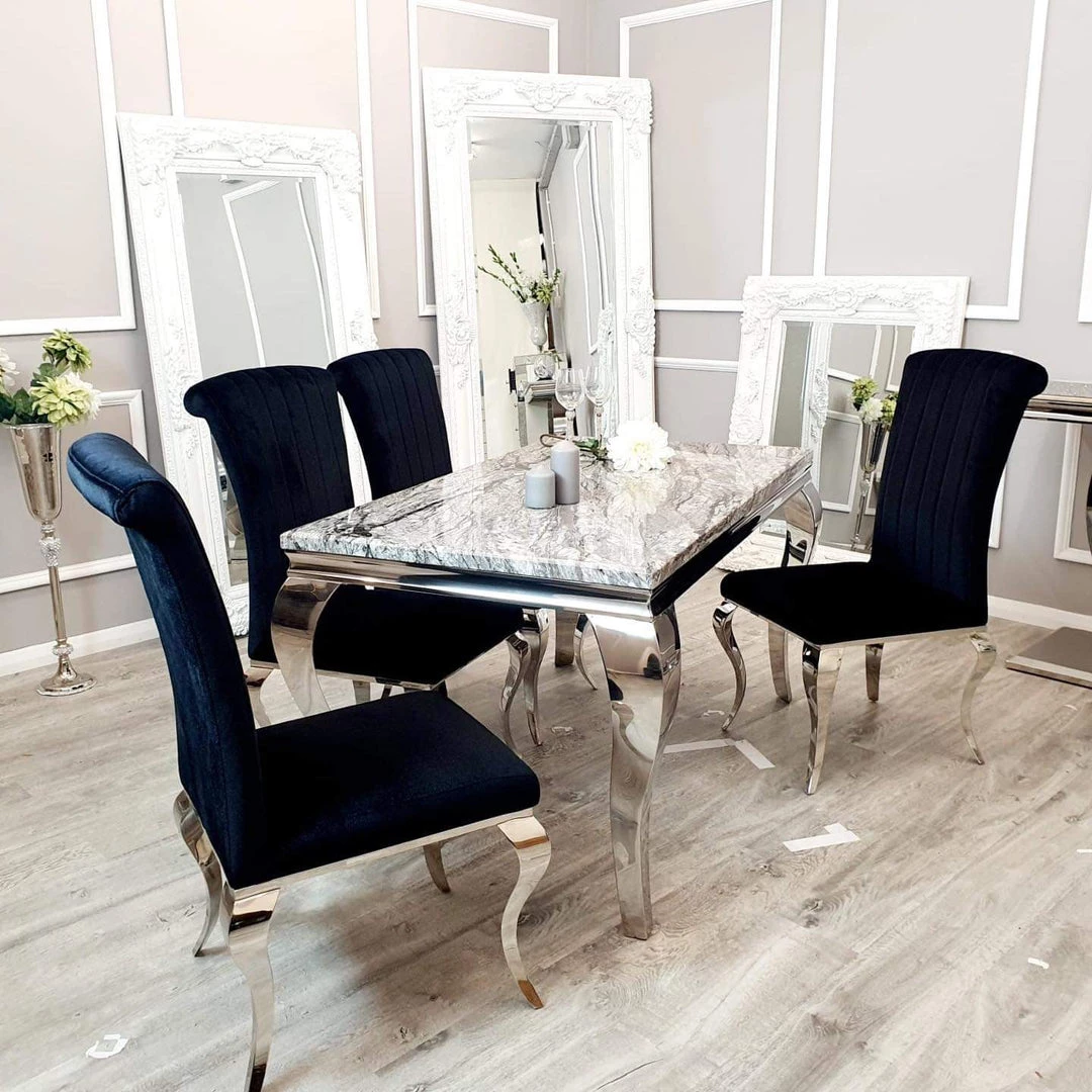 The NEW Luxury Velvet Chrome Leg Imperial Dining Chairs EXCLUSIVE to Furniture Imports Ltd !!! The Stunning Velvet Imperial Dining Chairs are sure to impress with stunning chrome legs and scroll back. Upholstered in the finest Velvet materials the Imperial chair ties together any dining suite with class and style