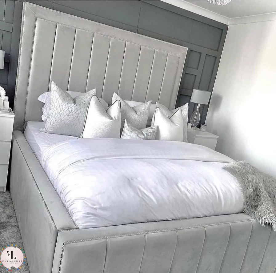 - Upholstered headboard and foot board with diamantes or button