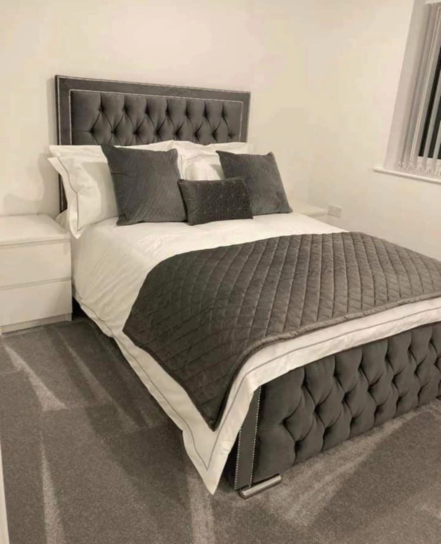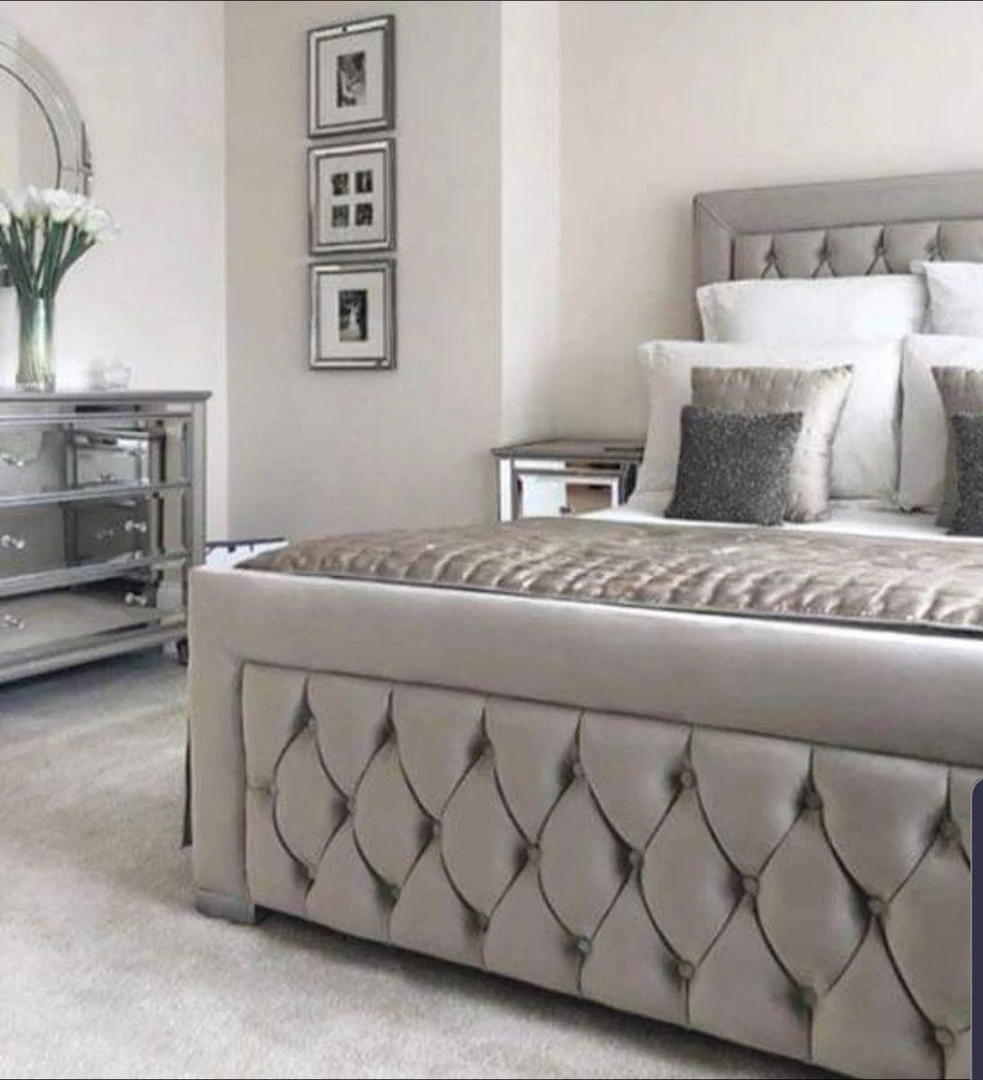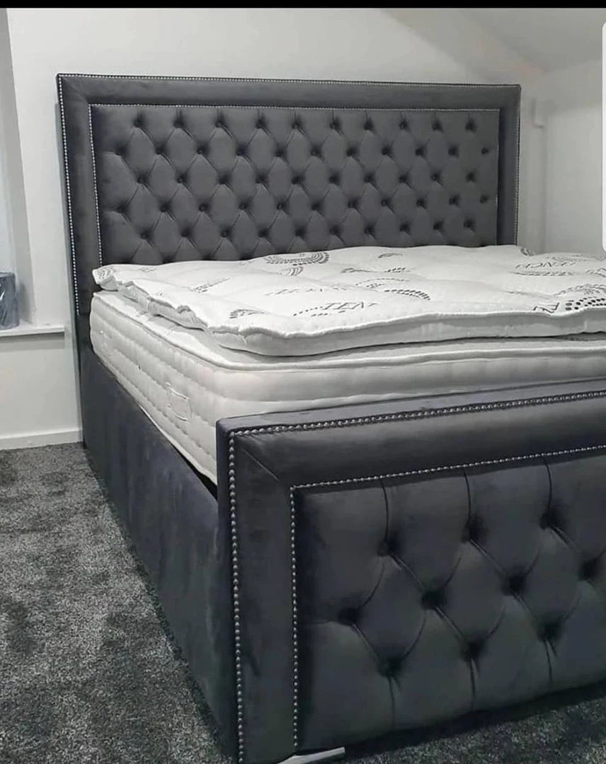 - Chesterfield Upholstered headboard and foot board with diamantes or button