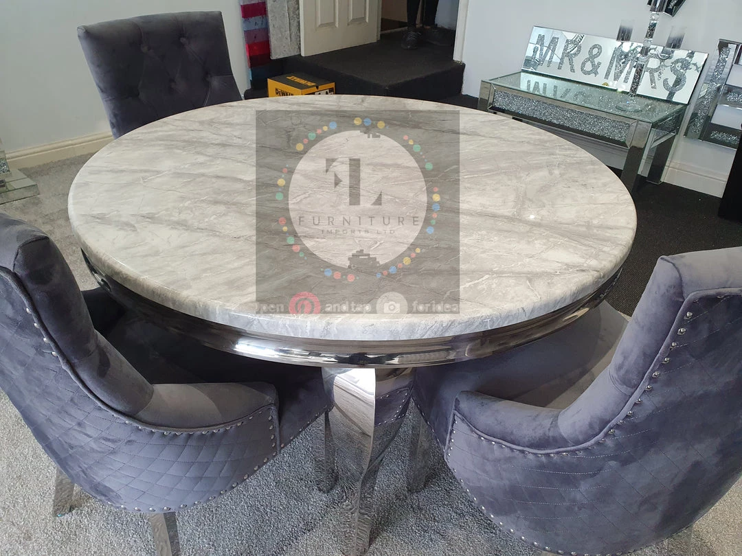 The Ashley Dining Table is an exquisite and stylish addition to any dining area. With its distinctive marble top and contrasting stainless steel base, The Ashley dining table is a sophisticated and enviable center piece for your dining room. Combining contemporary features with an opulent design, the dining table is the perfect place to enjoy mealtimes and gatherings