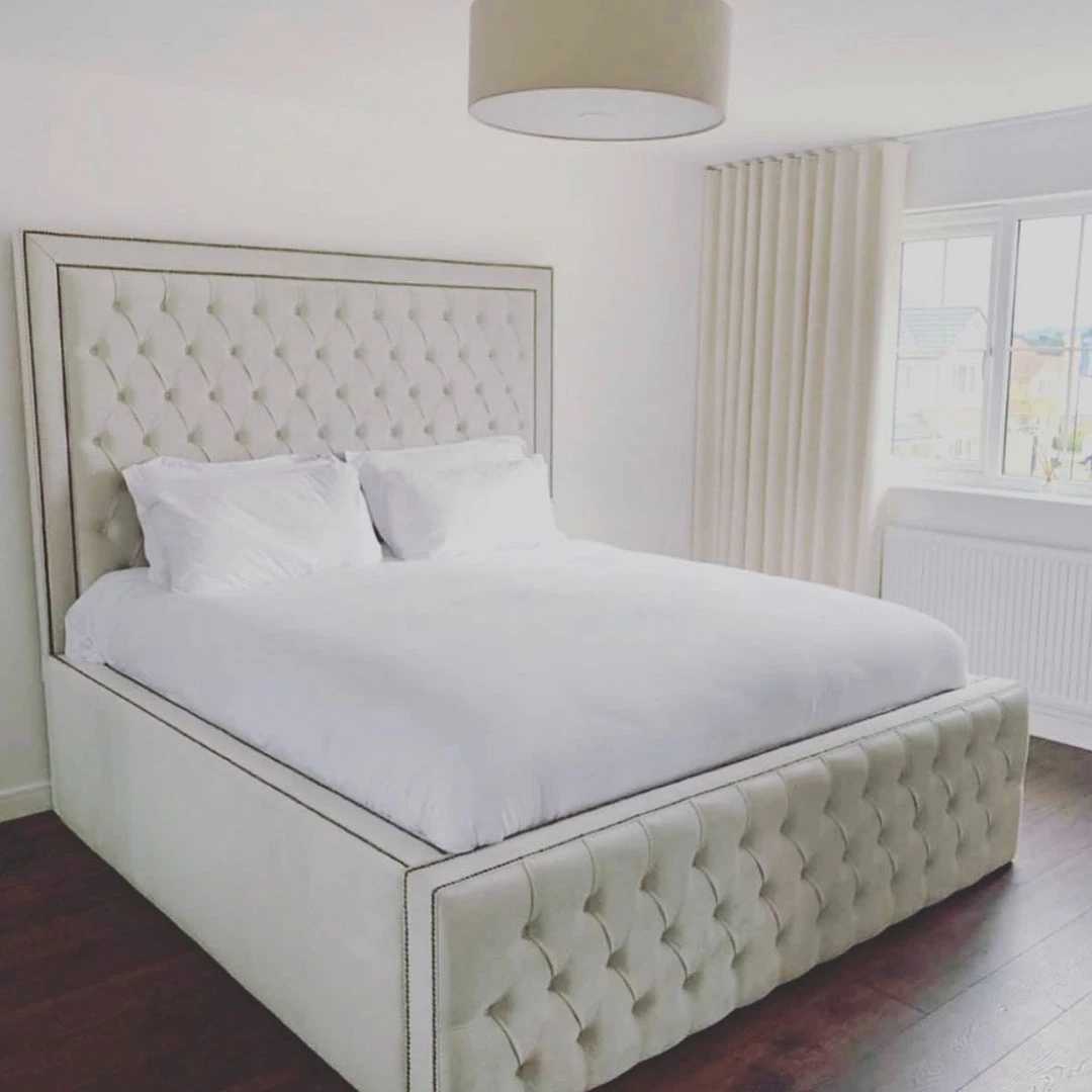 - Rolled back crushed velvet headboard and foot board with diamantes or button