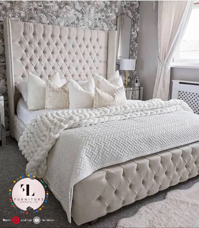 - Chesterfield Upholstered headboard and foot board with diamantes or button