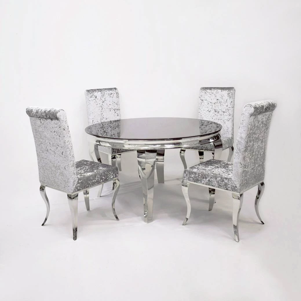 The NEW Luxury Velvet Chrome Leg Imperial Dining Chairs EXCLUSIVE to Furniture Imports Ltd !!! The Stunning Velvet Imperial Dining Chairs are sure to impress with stunning chrome legs and scroll back. Upholstered in the finest Velvet materials the Imperial chair ties together any dining suite with class and style