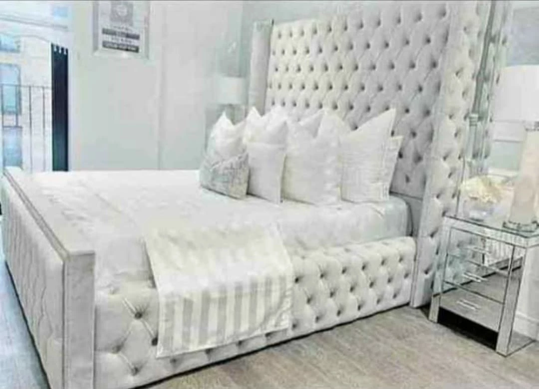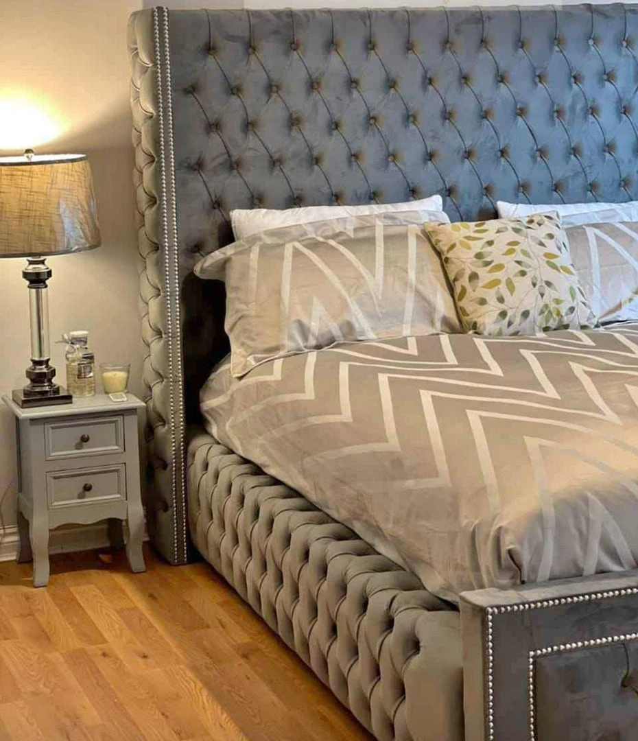 - Chesterfield Upholstered headboard and foot board with diamantes or button