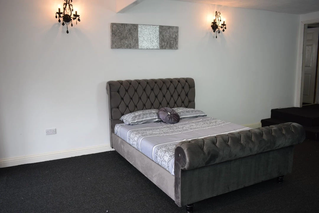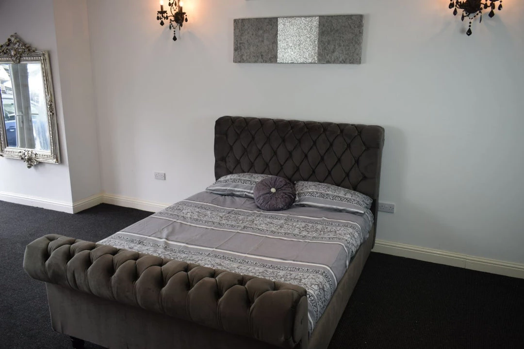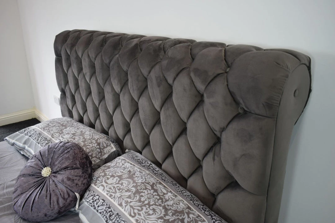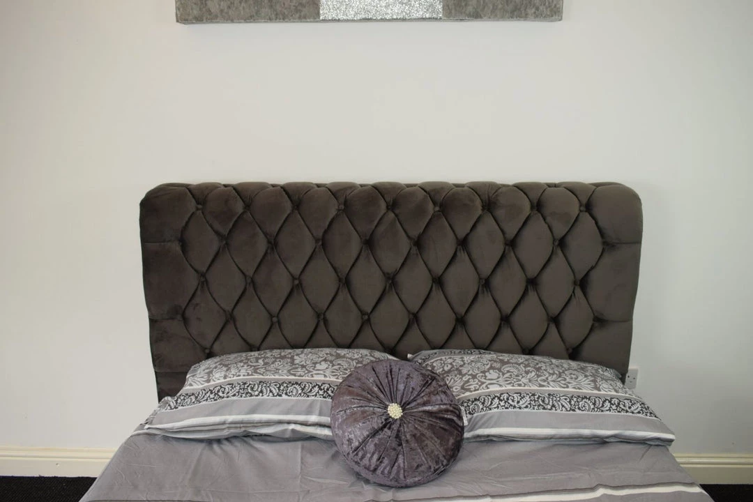 - Rolled back crushed velvet headboard and foot board with diamantes or button