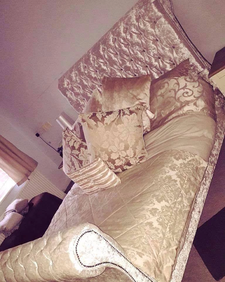 - Rolled back crushed velvet headboard and foot board with diamantes or button