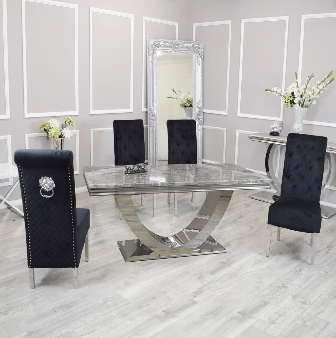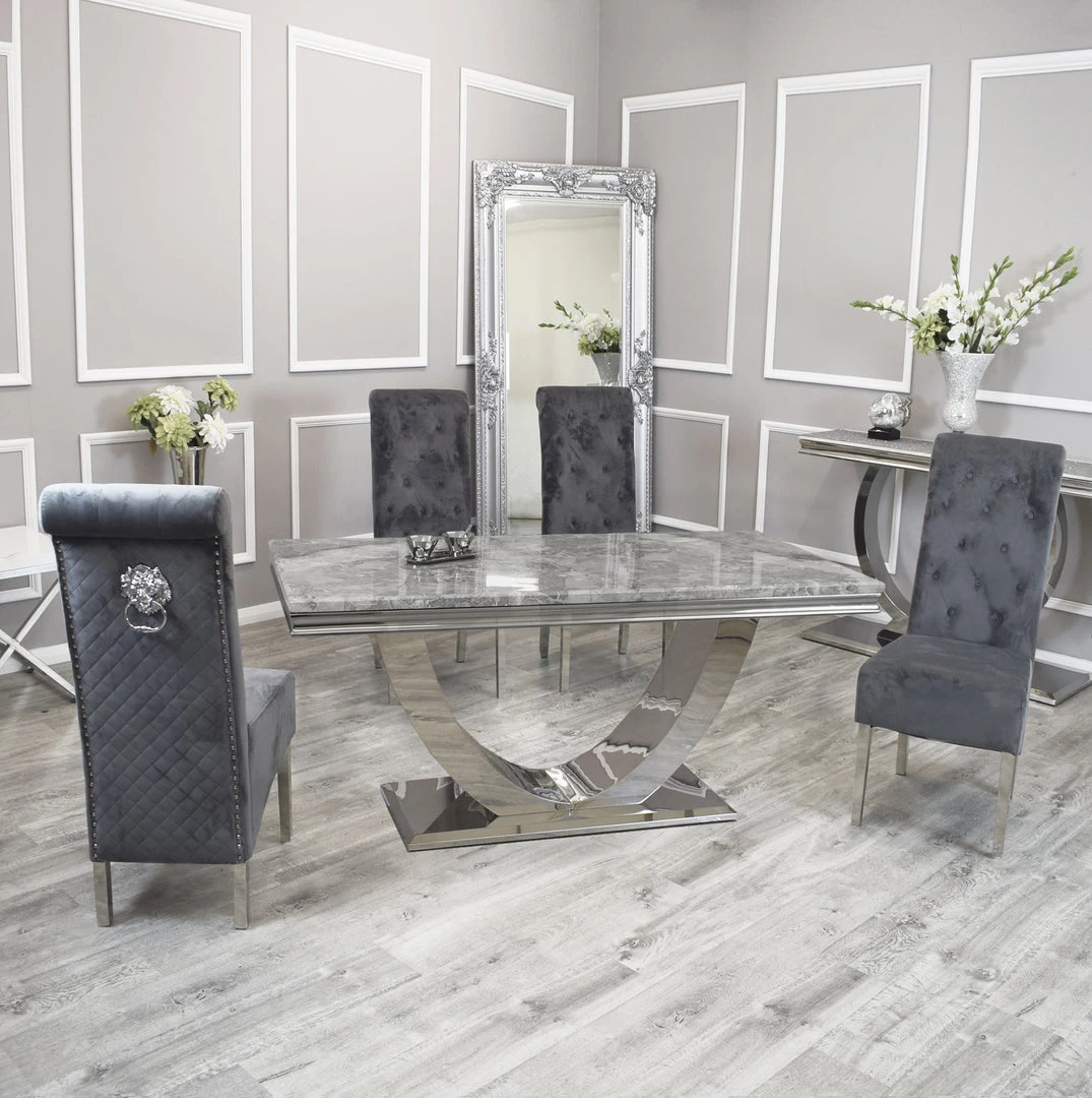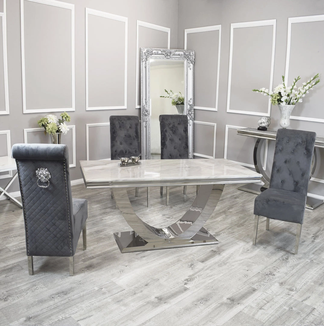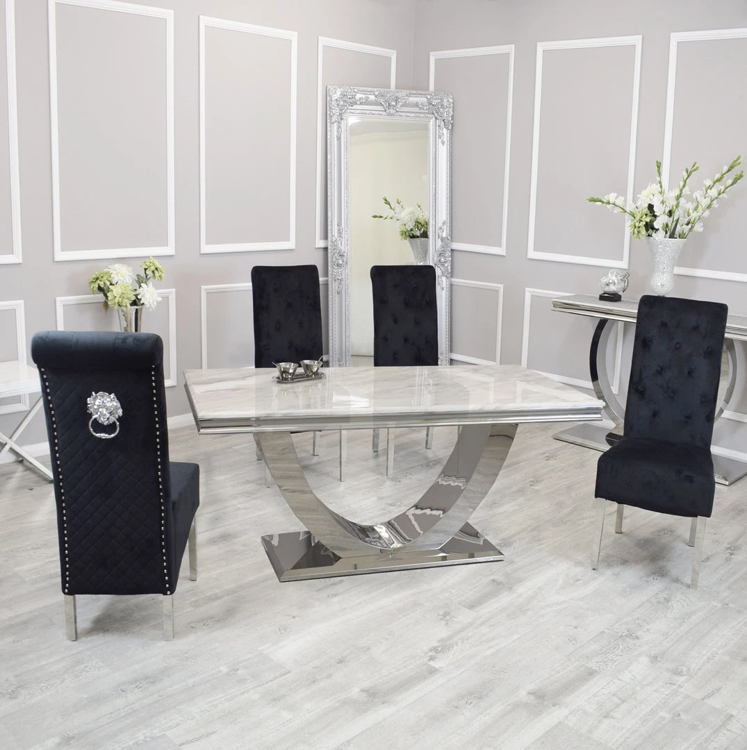 Bringing a special, contemporary approach, the Arial dining table is certain to wow visitors enabling you to eat in style, A wonderful, amazing marble top is done with smooth stainless steel legs ,For a really lavish eating knowledge include the Hobbs seat in an exquisite velvet smash complete, either in a different shading