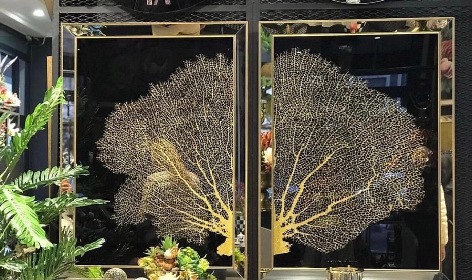 Stunning Gold Glitter Liquid Wall Art – Butterfly – Leaf