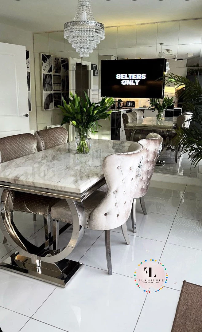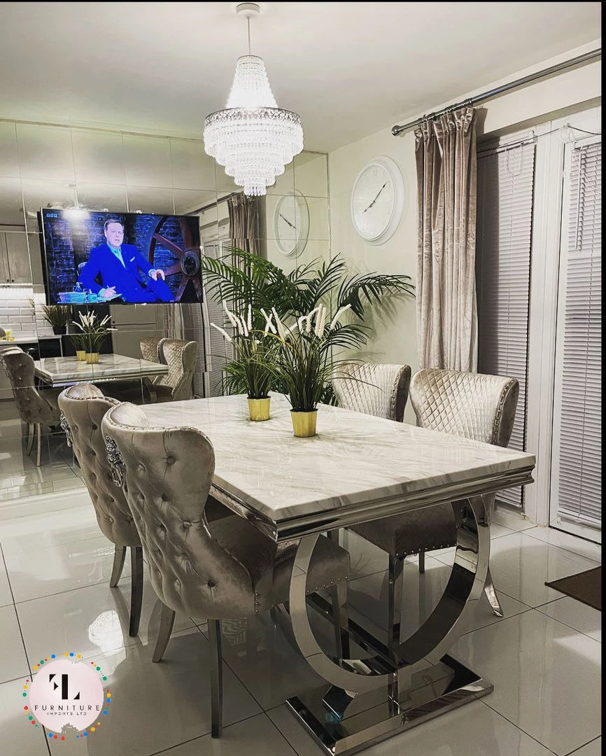 Bringing a special, contemporary approach, the Arianna dining table is certain to wow visitors enabling you to eat in style, A wonderful, amazing marble top is done with smooth stainless steel legs ,For a really lavish eating knowledge include the Hobbs seat in an exquisite velvet smash complete, either in a different shading
