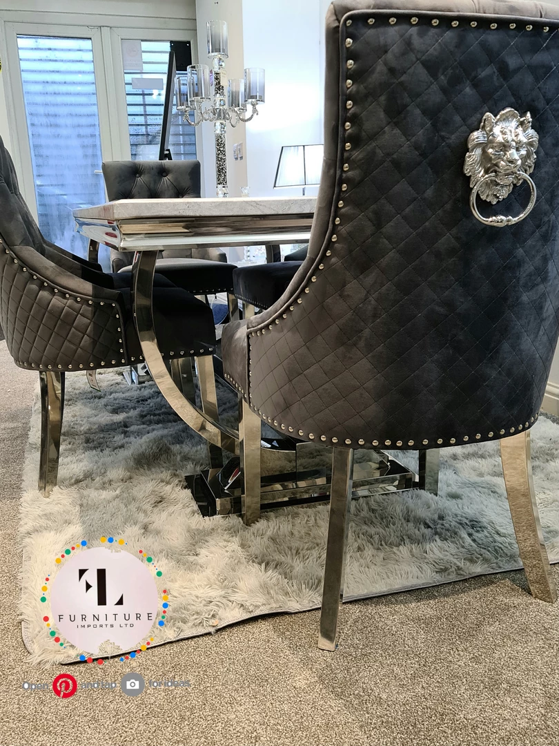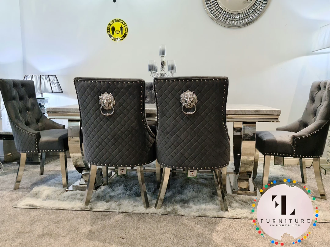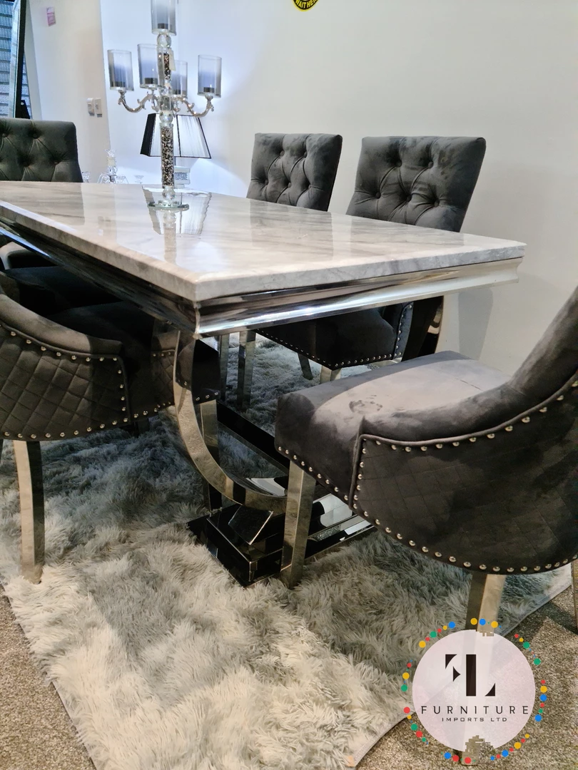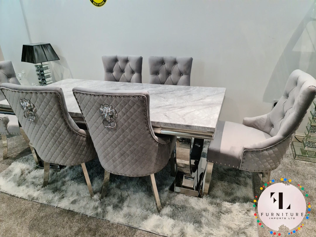 Bringing a special, contemporary approach, the Arianna dining table is certain to wow visitors enabling you to eat in style, A wonderful, amazing marble top is done with smooth stainless steel legs ,For a really lavish eating knowledge include the Hobbs seat in an exquisite velvet smash complete, either in a different shading