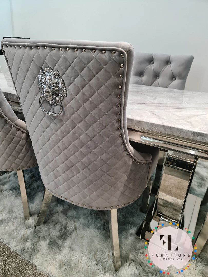 Arianna Mirrored Grey Marble Effect Dining Table Set + Majestic Chairs