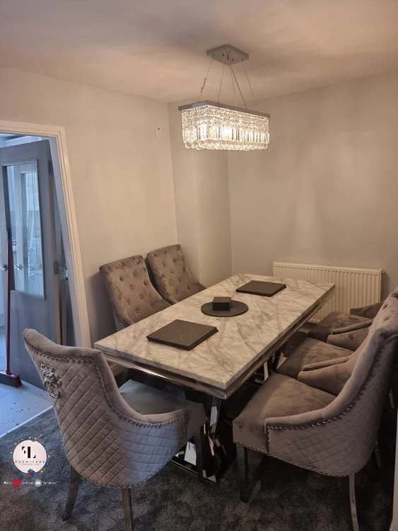 - Comes with dining table and 4 dining chairs (CHROME LEGS)