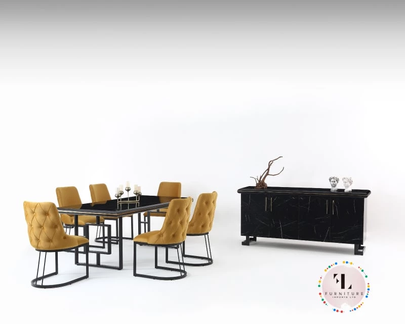 Furniture Imports LTD Anka Black Static Dining Table Set With Black Legs ALL DUBAI DINING & OCCATIONAL RANGES