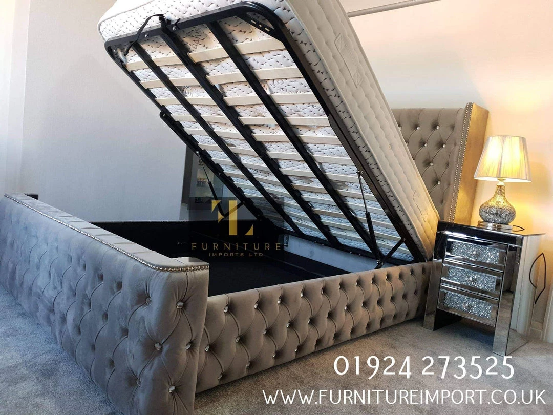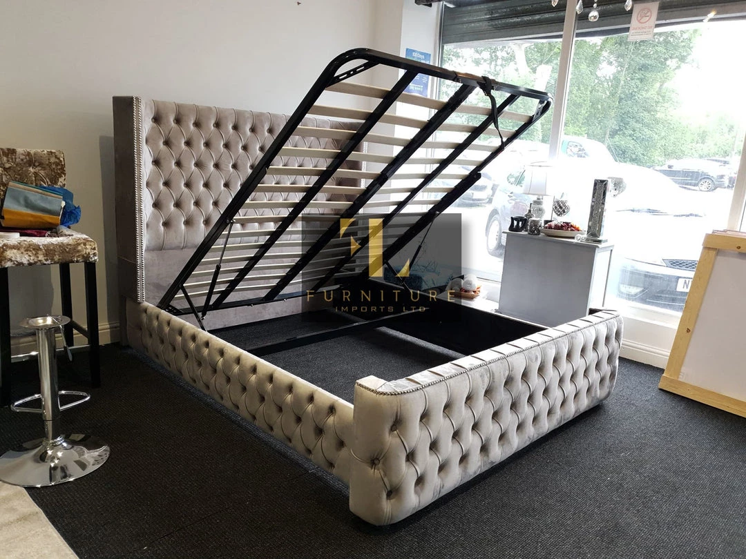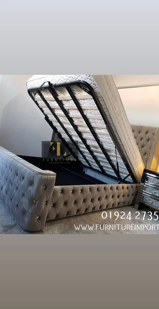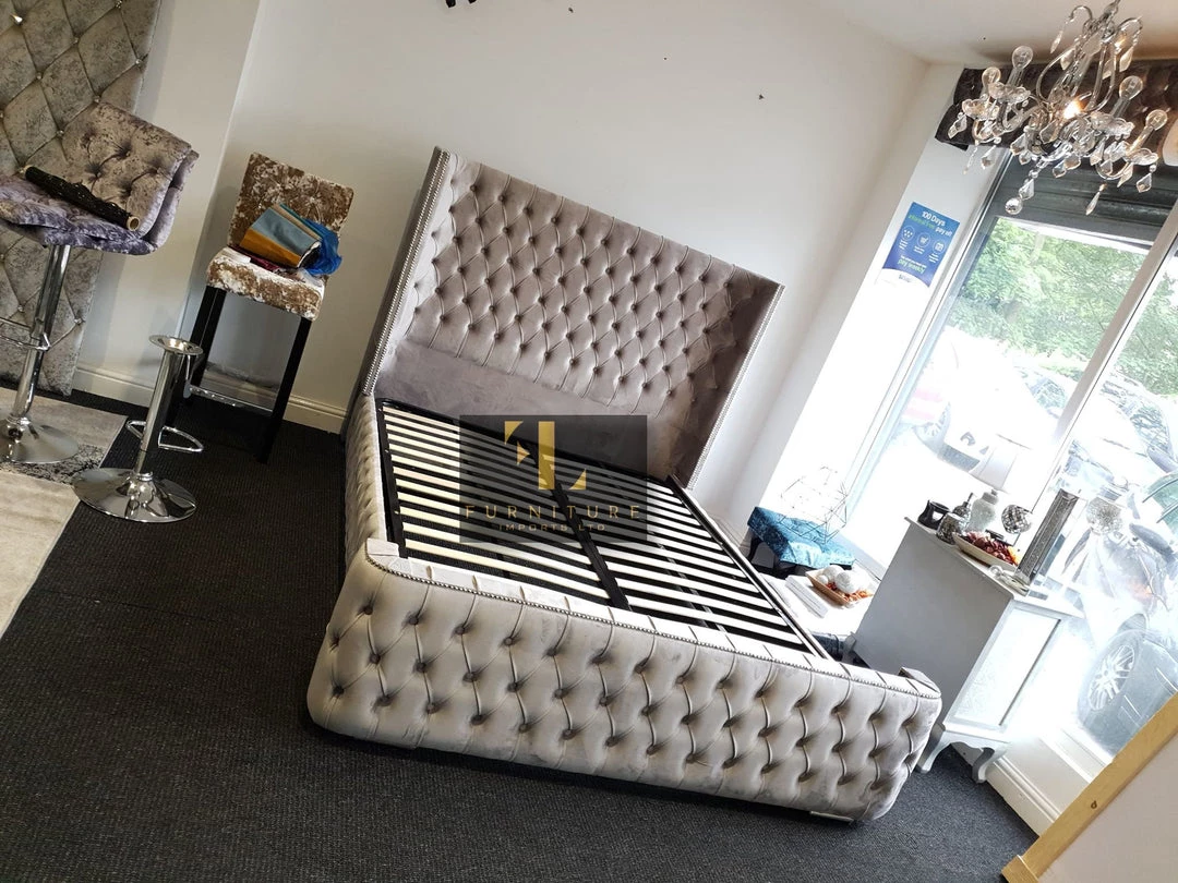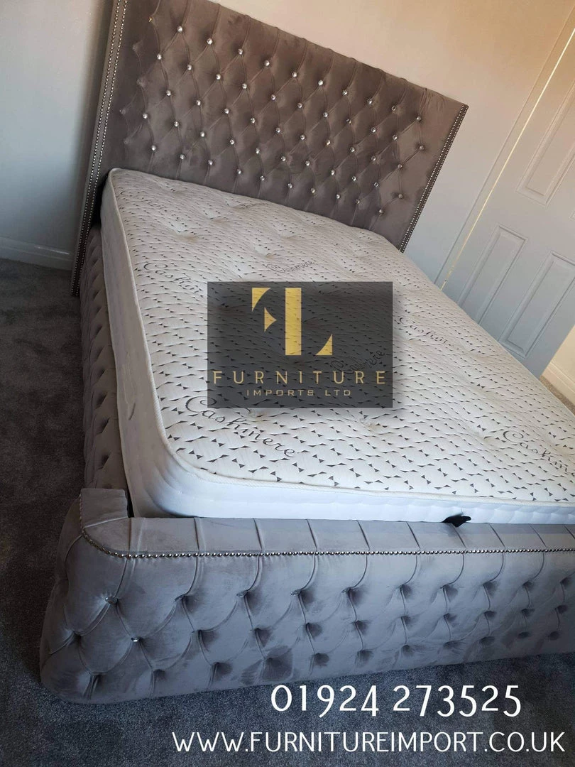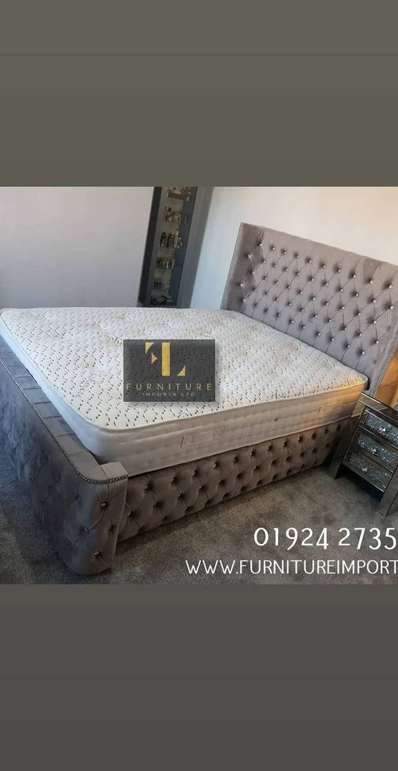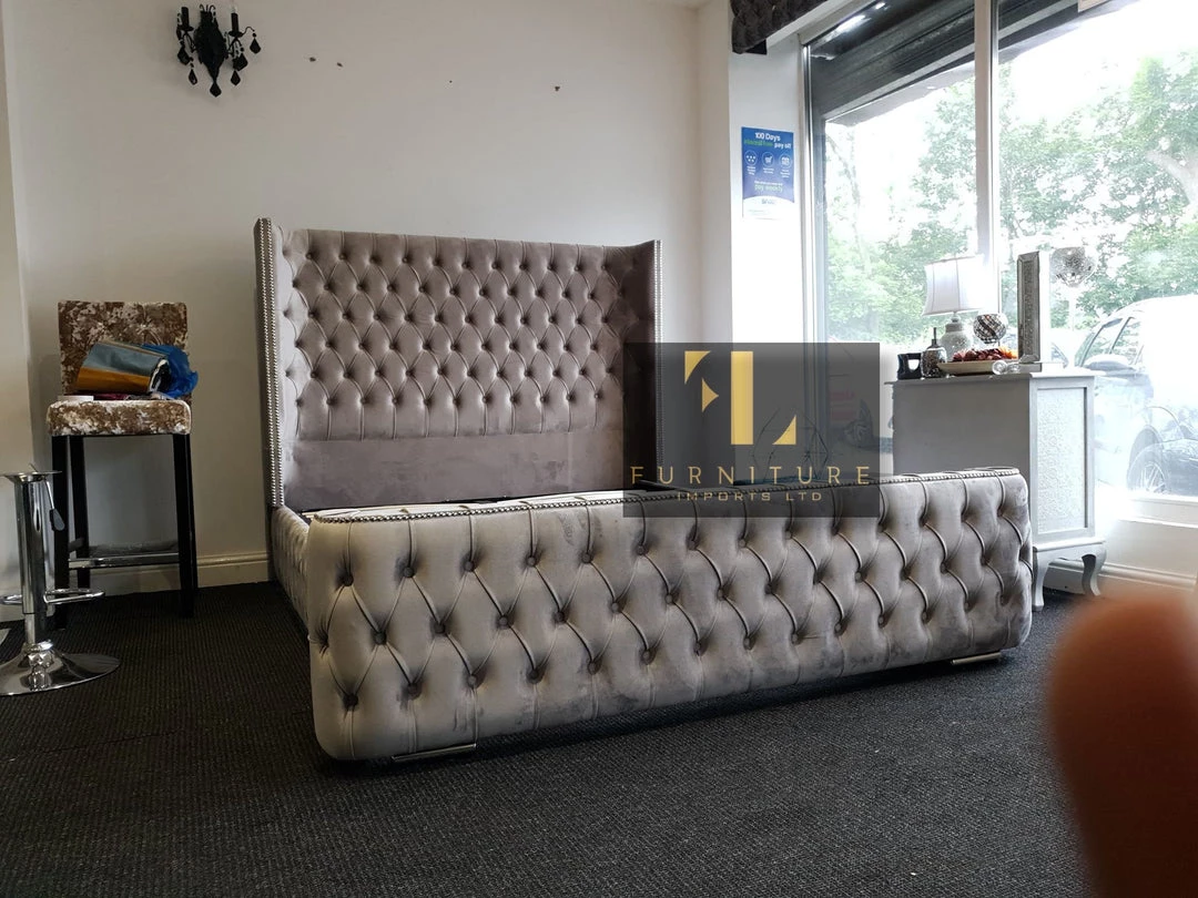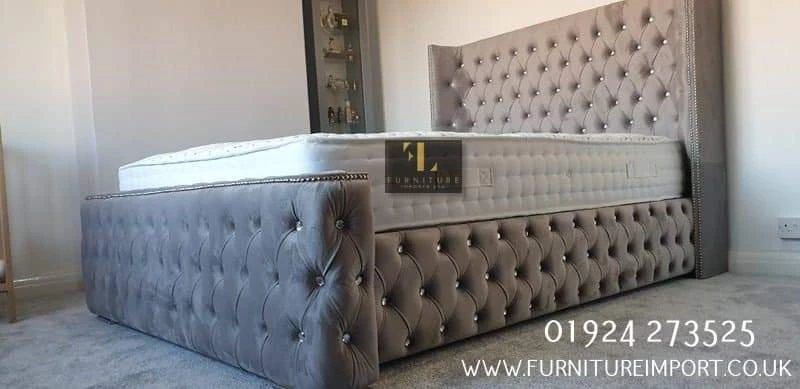 - Wingback Plush velvet headboard and foot board with diamantes or button
