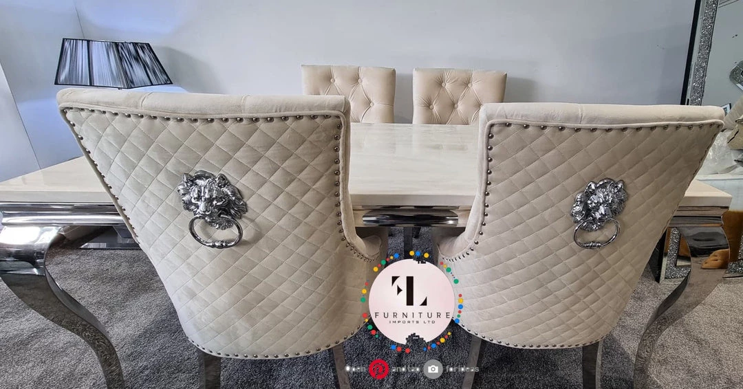 Ultra chic and high end, the Chelsea Dining Set is the ultimate collection for those who crave style and glamour. It’s unique cream marble effect top is supported by a polished stainless steel base
