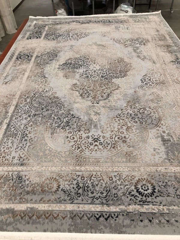 Crafted with a beautiful design, this grey, taupe medallion rug is perfect for completing your neutral home decor concept. Its Shimmer effect alongside its pile plush makes it a very soft warm rug