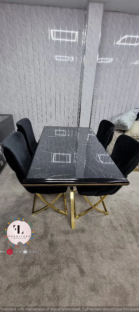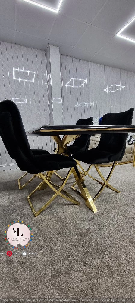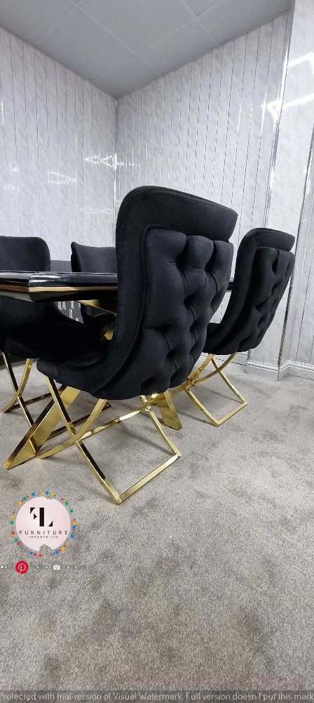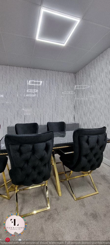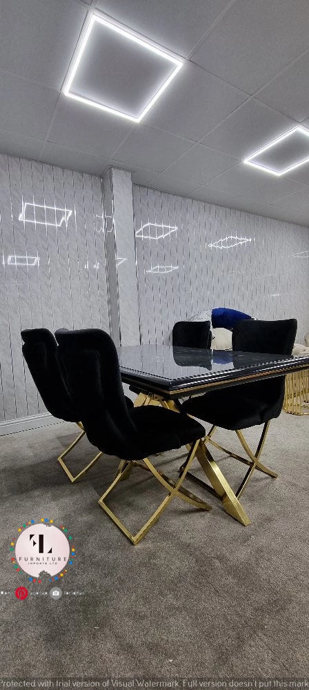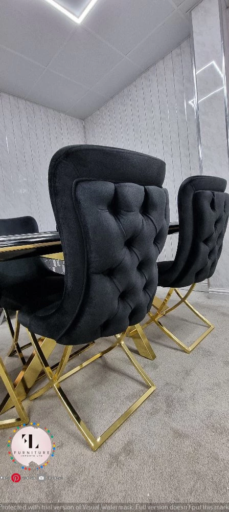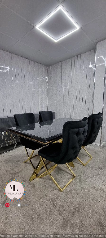 We also have a range of colours available, from glossy white and static black – all of which give a sense of understated style to the shine of the finish on these chrome dining table and chairs. The chairs come in matching shades, and are upholstered in velvet fabric and other fabric options that are stylish, yet practical