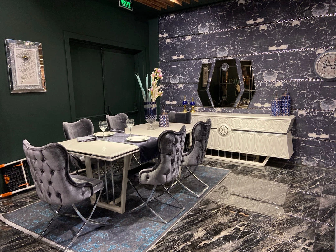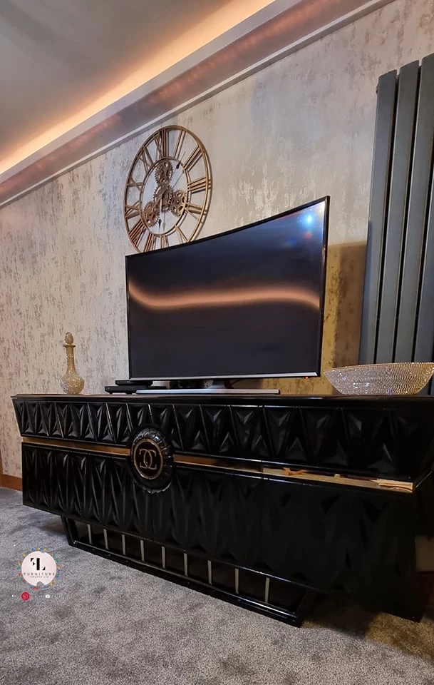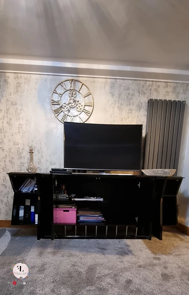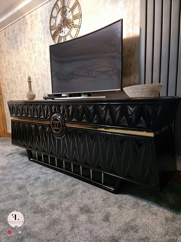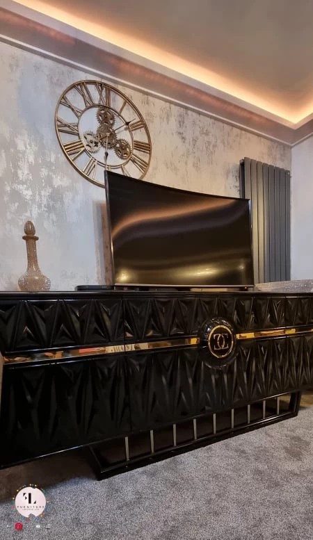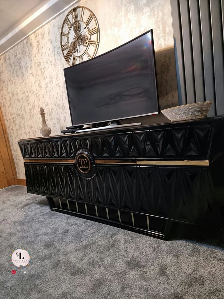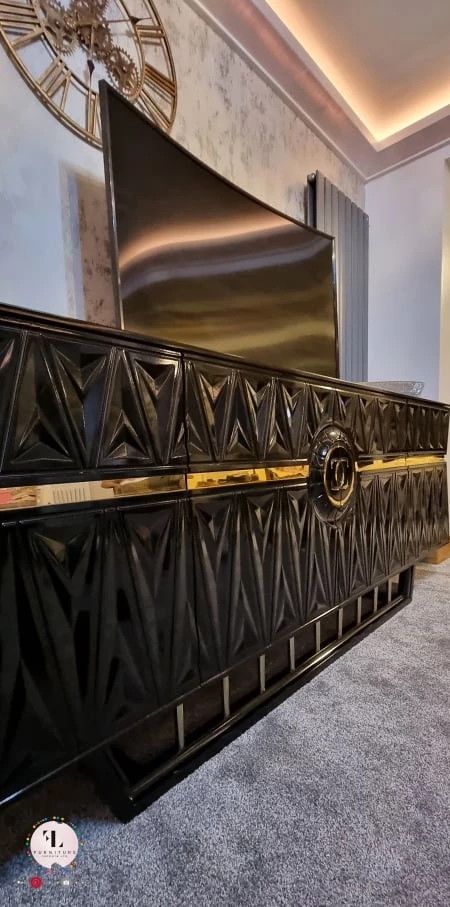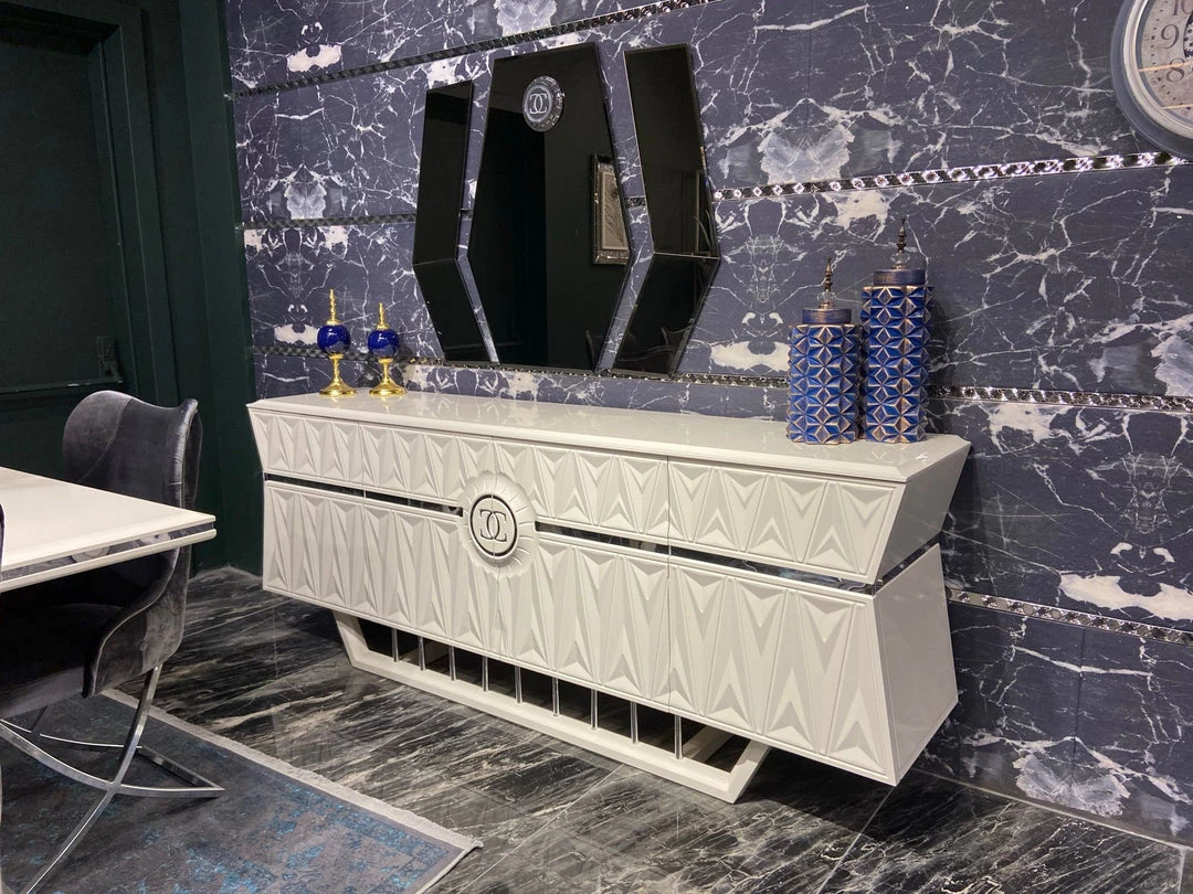 Designed to add a touch of luxe to your space, this White gloss sideboard is sure to catch compliments. With rich gloss finished with a parquet design, this unit is timeless and classically beautiful. The Chrome-plated steel frame and matching handles add a fresh, modern edge with a subtle sparkle, while the large surface top gives you the space to make it your own, ideal for displaying flowers, photos and more. With 4 internal compartments, there’s plenty of room to store anything from barware to book to bits and bobs that need a home.
