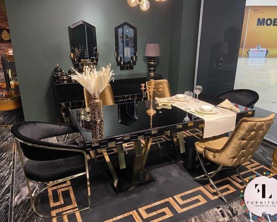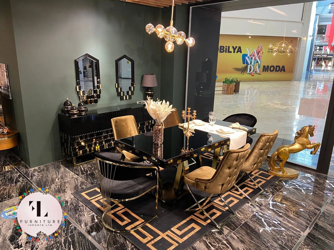 Black & Gold Dining Set – 180cm Black And Gold Table +