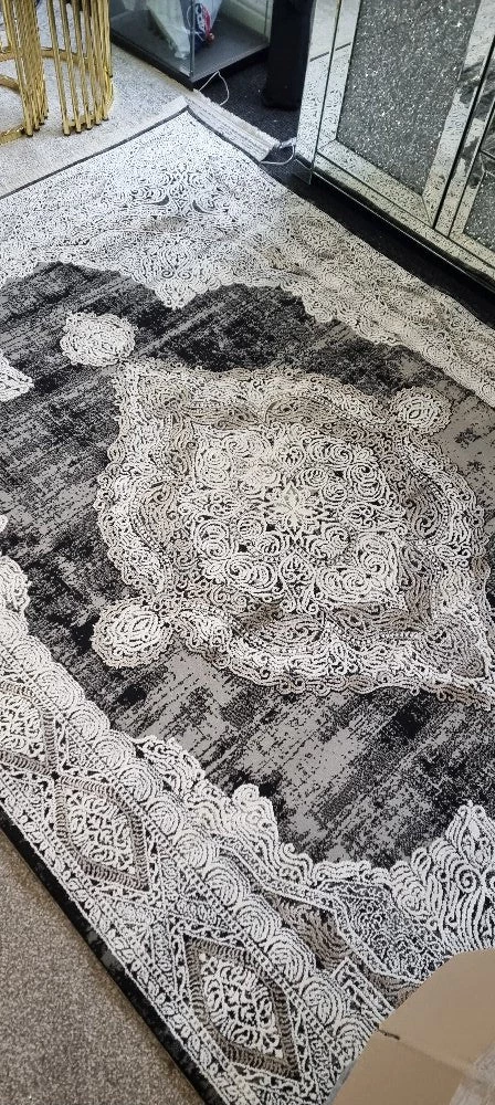 The colour of Santorini rug is a mixture of Grey, White and Silvers and a hint of black