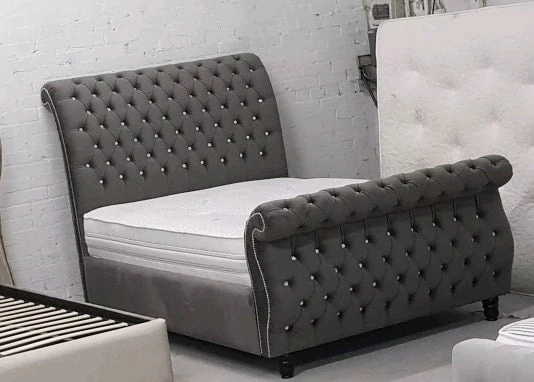 - Wingback Plush velvet headboard and foot board with diamantes or button