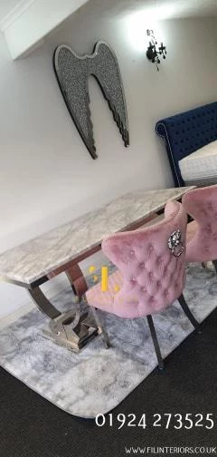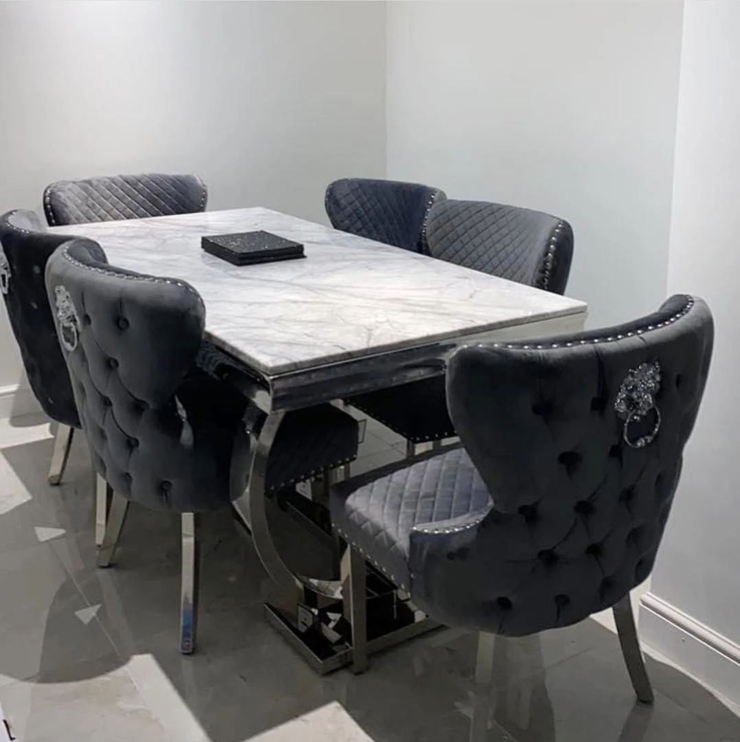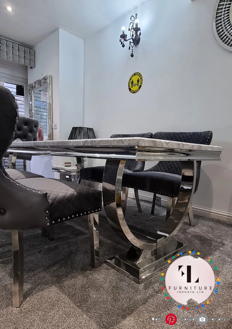 Bringing a special, contemporary approach, the Arianna dining table is certain to wow visitors enabling you to eat in style, A wonderful, amazing marble top is done with smooth stainless steel legs ,For a really lavish eating knowledge include the Hobbs seat in an exquisite velvet smash complete, either in a different shading