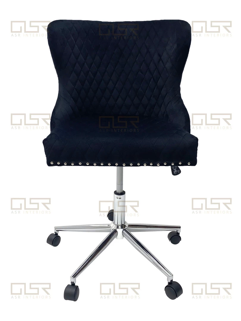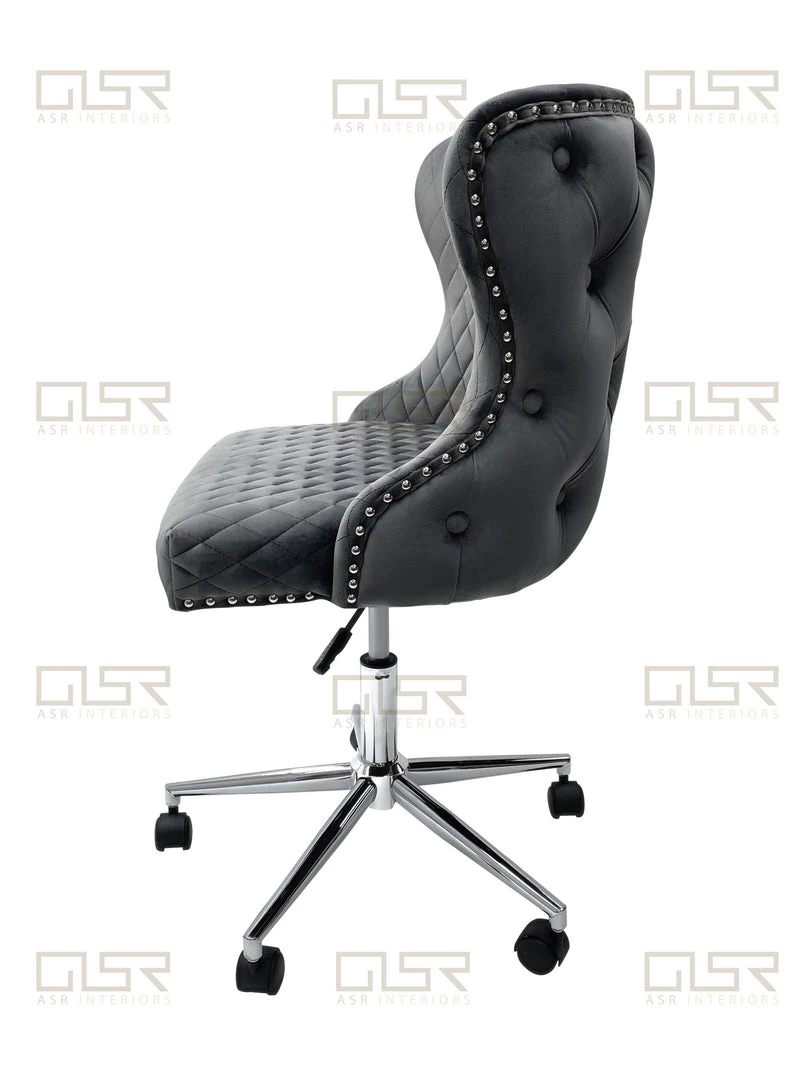 Feast your eyes on the Valentino Office Chair in Plush Velvet, a luxury design that is guaranteed to impress. Upholstered in Plush Velvet, the comfortably padded seat with a deep buttoned effect and supportive high backrest are enhanced by Diamond detailing in the backrest.