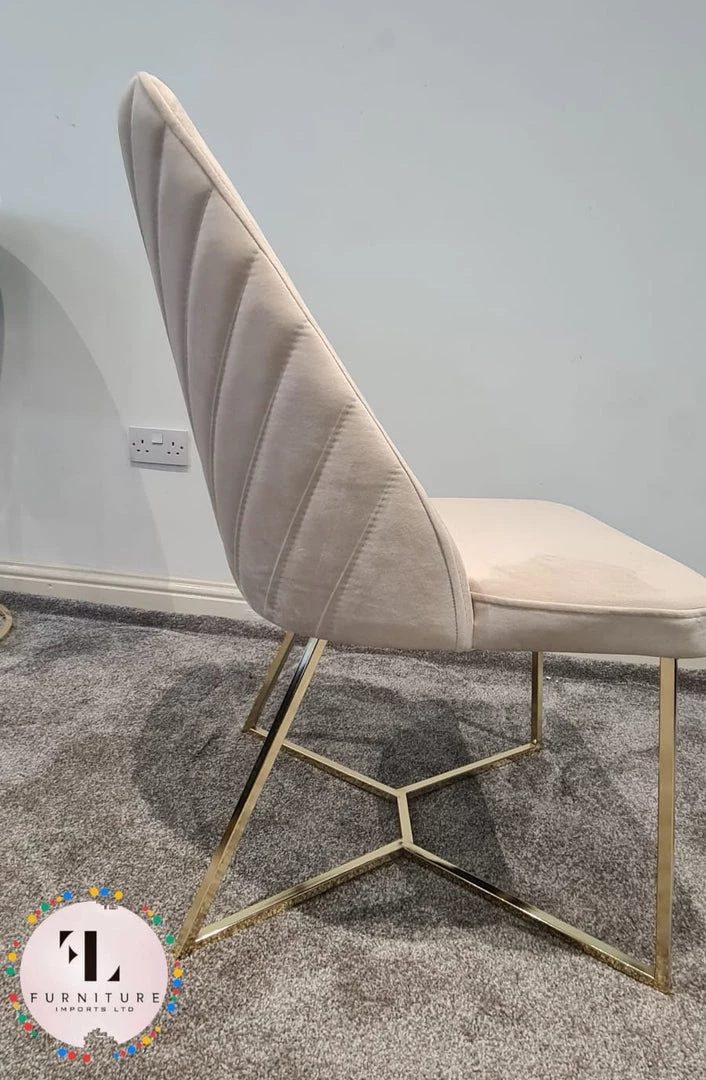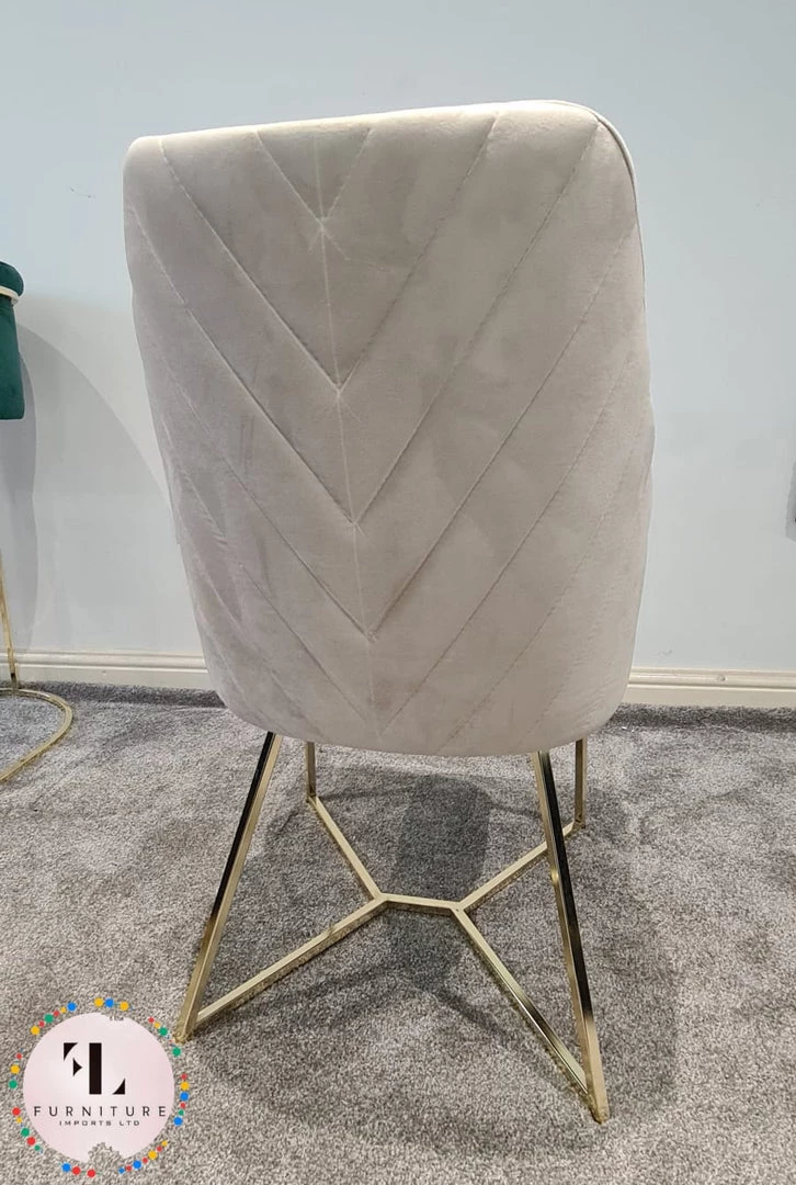 Feast your eyes on the Yildiz Dining Chair in Plush Velvet, a luxury design that is guaranteed to impress. Upholstered in Plush Velvet, the comfortably padded seat with a stiched design and supportive high backrest are enhanced.
