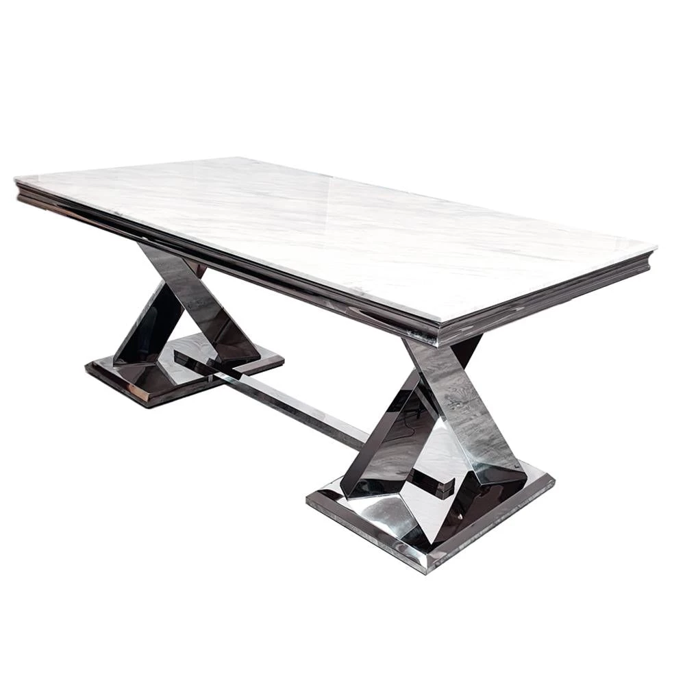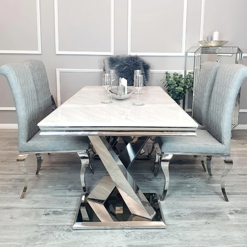 Zavetti Chrome 1.8m Dining Table is a brand new addition to our dining table range. Featuring a marble effect top and chrome base, this contemporary dining table would make a stunning addition to any modern home.