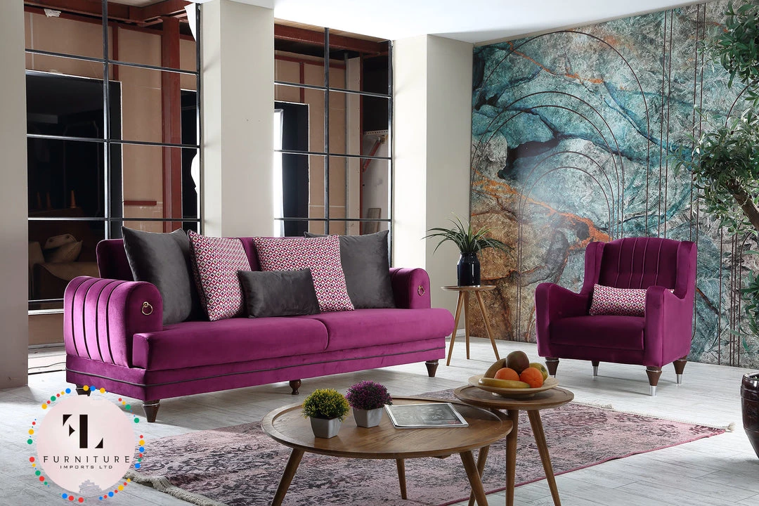 This Lucia sofa is a stunner, and it will surely make your living room look like the cover of an interior design magazine. Its nifty silhouette showcases velvety smooth upholstery spruced up with neat tufting that give it a flair of decadent style. Paired with the straight-lined upholstery on the arms with a beautiful metal ring knocker finish. The brilliance of this sofa goes beyond it luxurious look, as it doubles as a bed thanks to its fold-down backrest. This Lucia sofa will be the most elegant and functional addition to your home.