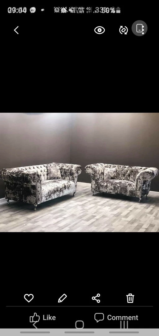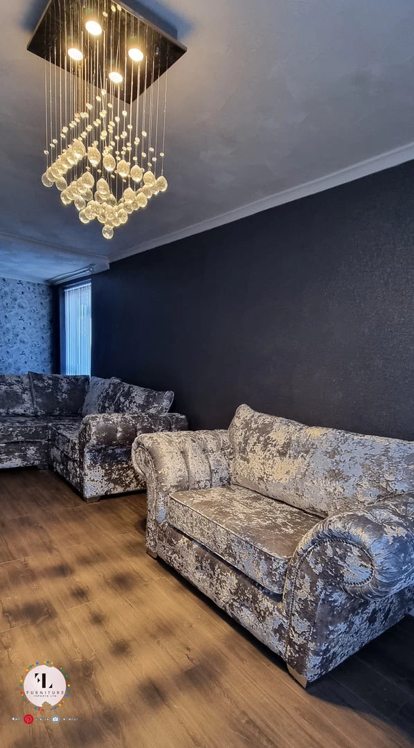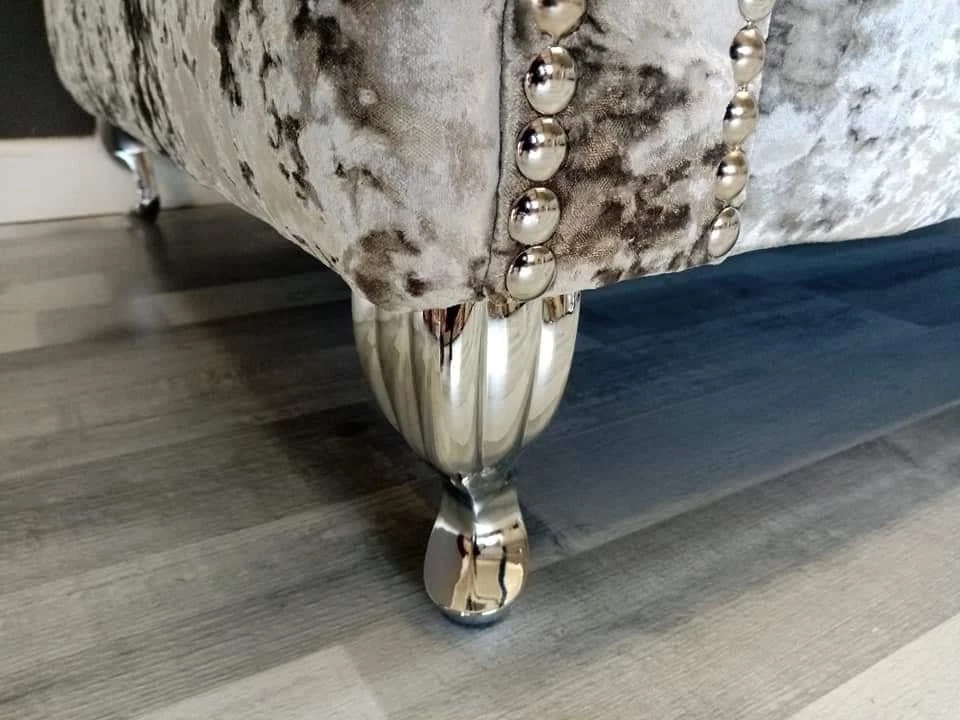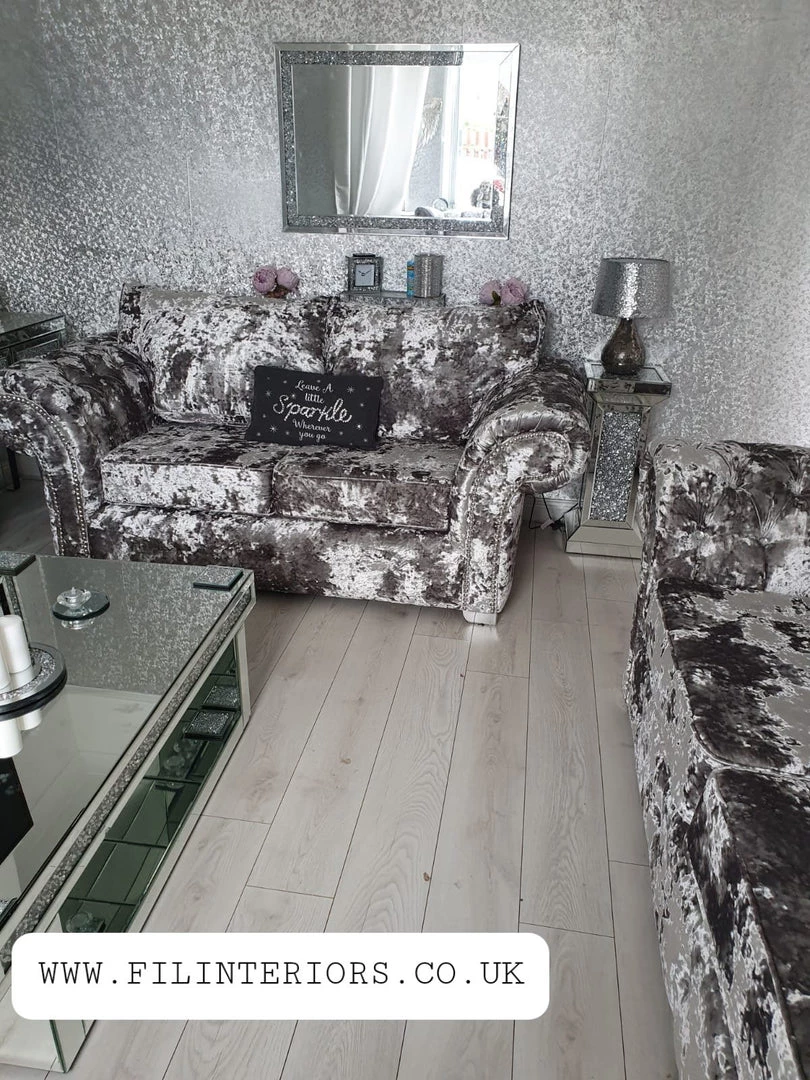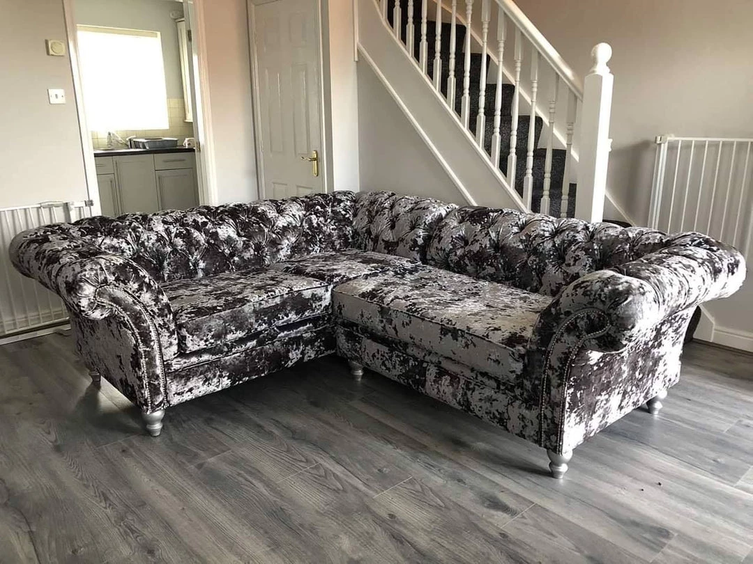 A contemporary twist on a classic Chesterfield, this sofa has all the traditional features Rolled back and arms, button studs – but with a sumptuous high-quality crushed velvet covering. Update an older house or add class to a modern home.