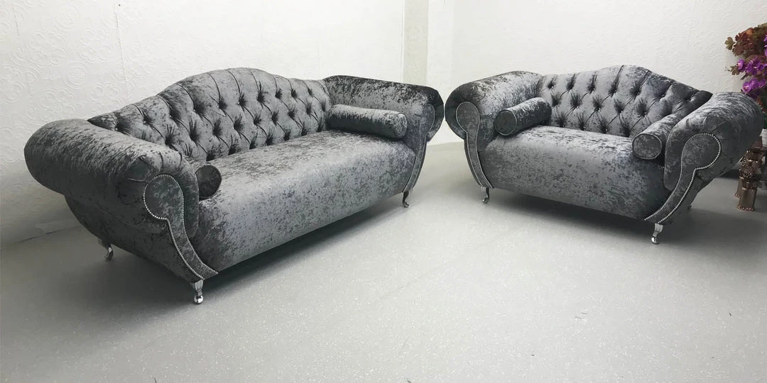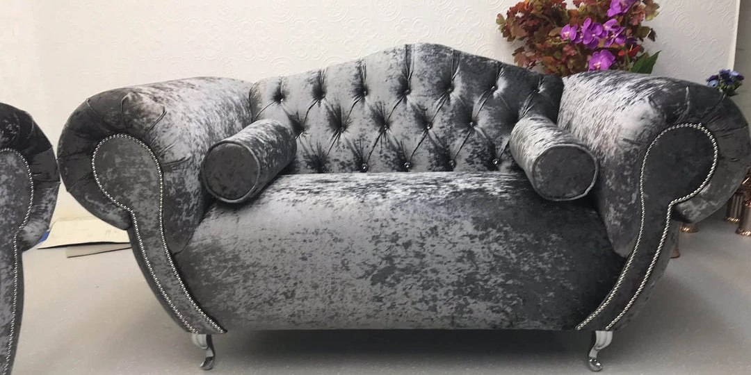 its wide chunky sofa arms gives the sofa dimensions. The smooth velvet upholstery finish makes this sofa a center piece in any room