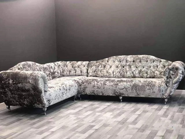 https://youtu.be/-7FqMM3FlxM (Fabrage Blush Pink Velvet Corner Sofa)