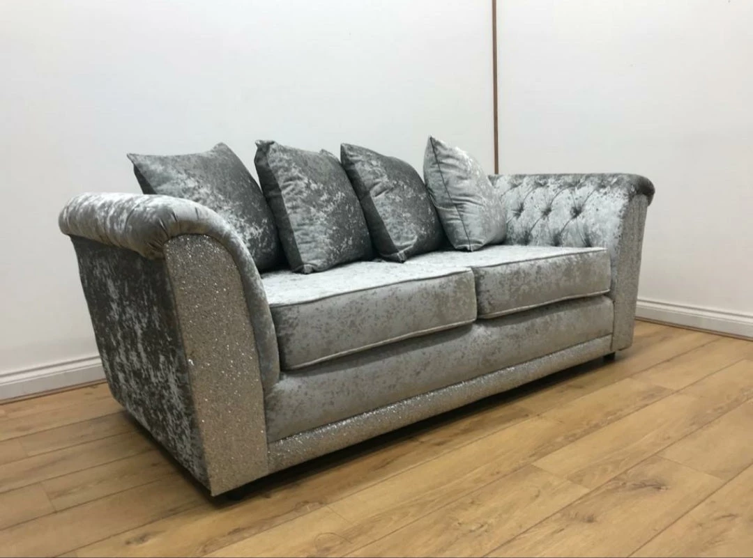 Our brand new Rachel Glitter Crushed Velvet Sofa combines both comfort, style and affordability. The Rachel range of sofas style is versatile and can fit in any home. This practical sofa has a thick fabric and comfy cushions that are soft to touch and a delight to sit on.