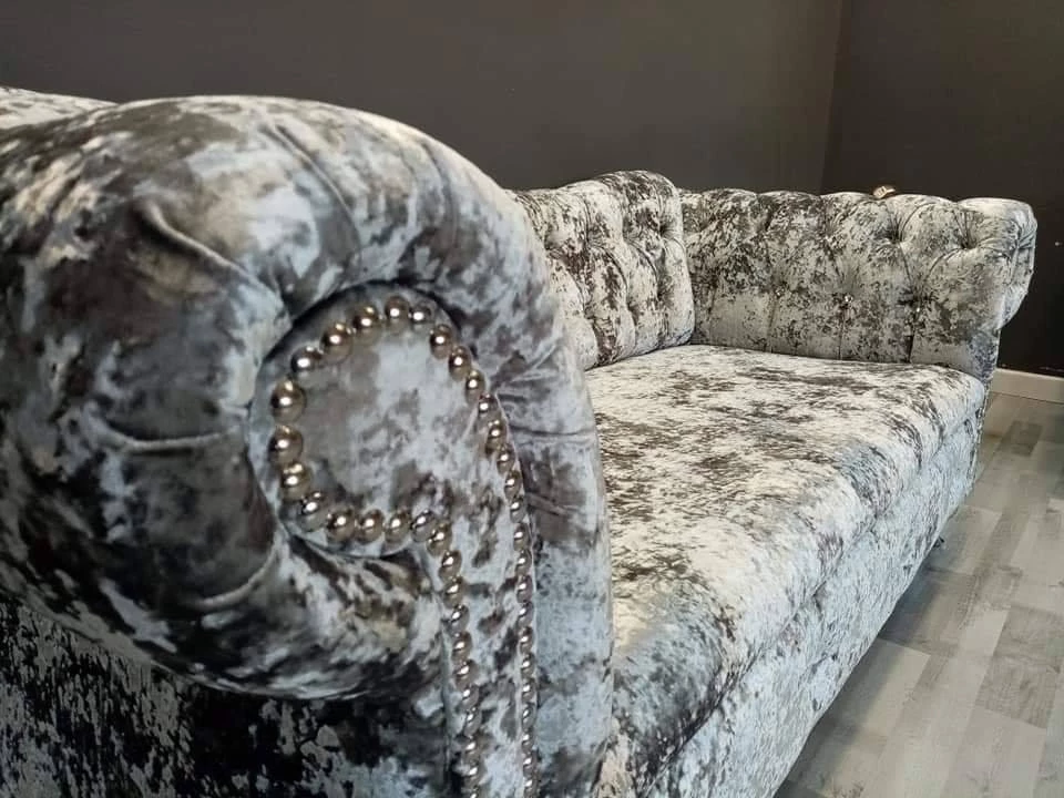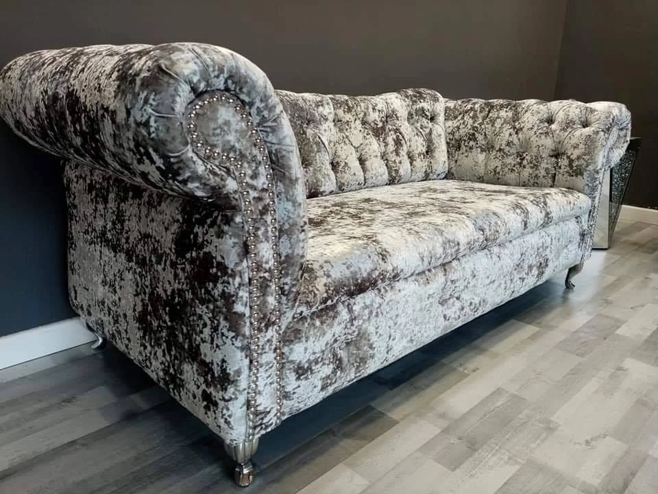 Made in the UK, the Raphael range blends classic styling with a bang on trend Crushed velvet look fabric. With supportive fibre filled seat cushions, and relaxing fibre filled scatter back cushions (fully reversible), you will want to lounge back into this sofa and let the stresses’ of the day melt away. Upholstered in Glamorous Crushed Velvet look fabric, with a gorgeous soft to the touch feel which you won’t be able to keep your hands off.