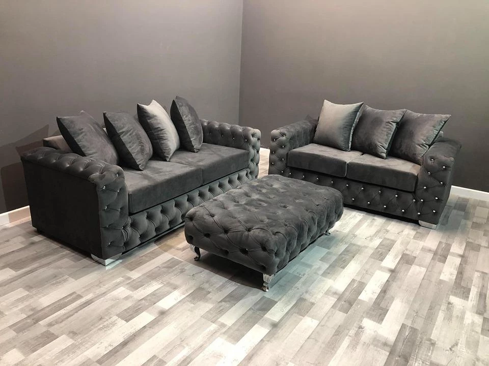The Ashton range features a contemporary design with a luxury velvet finish and elegant upholstered chunky arms.