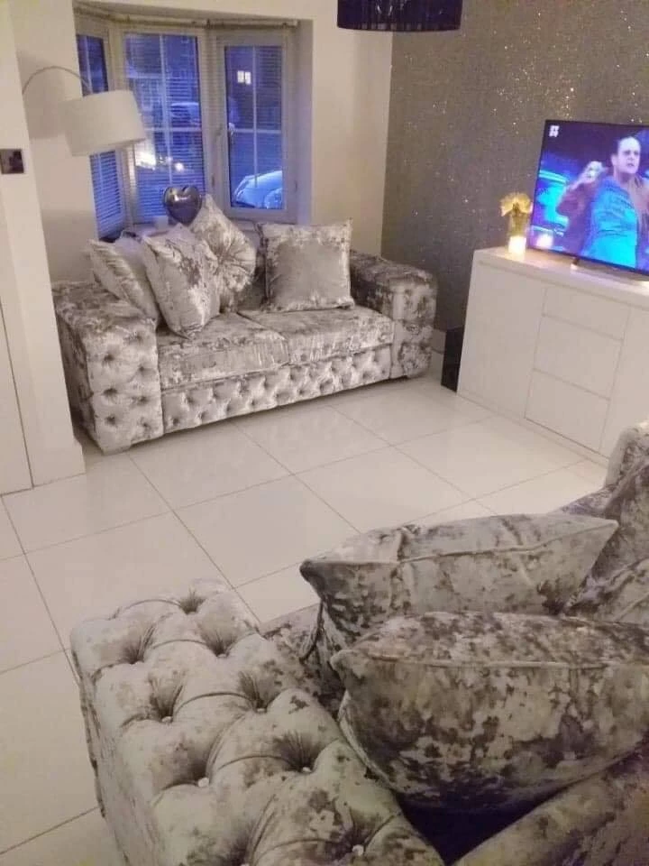 2) https://youtu.be/pr6jIS0WRaQ (Ashton Pink Velvet Sofa 9ft x 6ft)