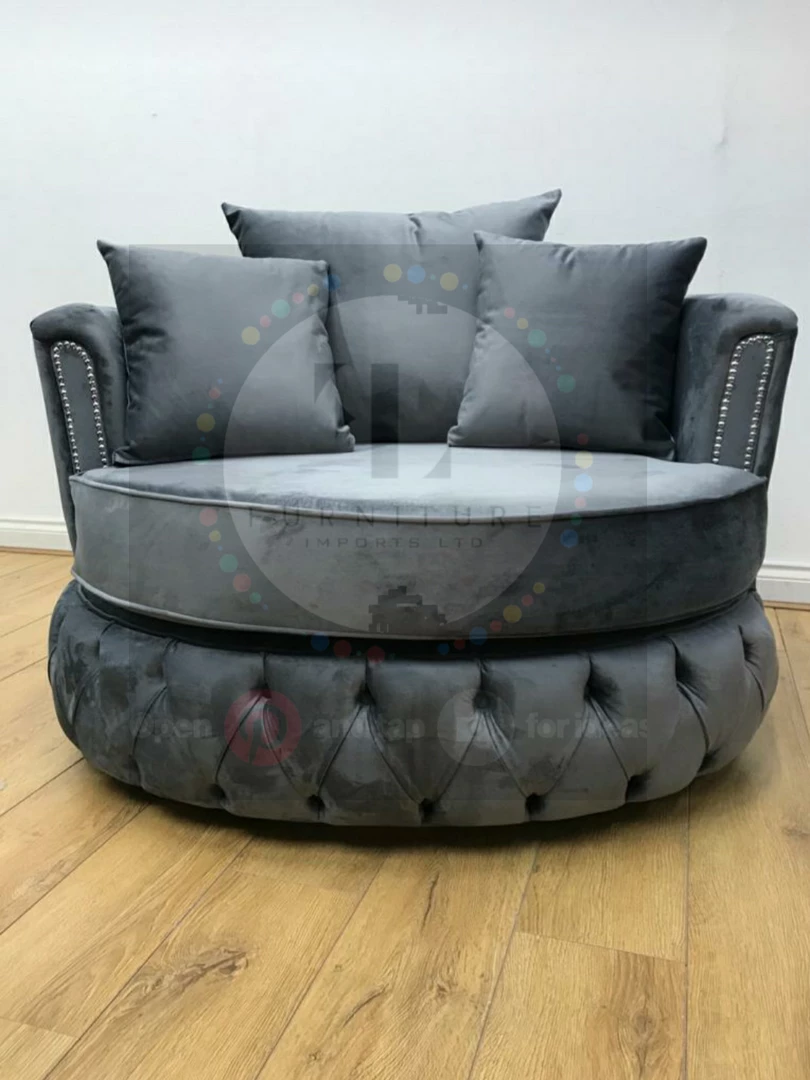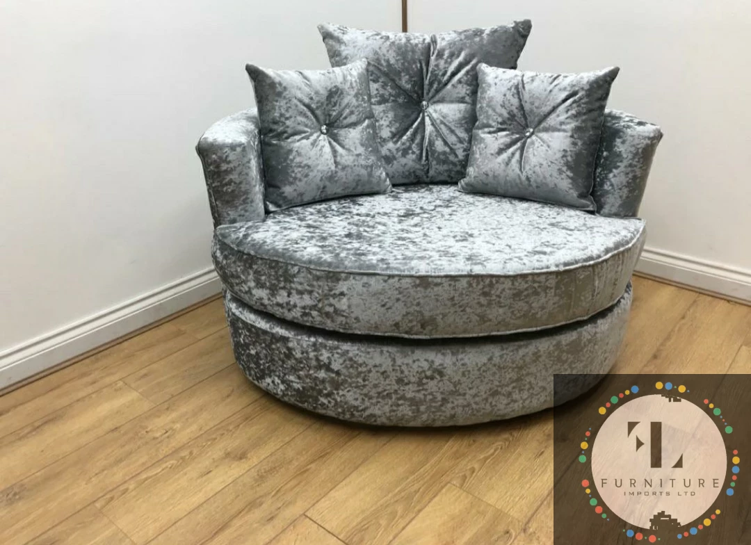 Swivel Chair / Cuddle Chair In Velvet or Lustro Fabric Choice